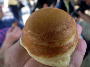 御嶽神社の所で開業。すでに先代から80年の歴史があるそうです。雨風の強い日は店が出ないこともあるそうですが、我々が行く時にはラッキーにもいつも店が出ています。森高さんの伝説のライブの一つ、会場の大合唱に森高さんが号泣したあの足利市民会館でのライブは皆さんよくご存知だと思います。そのライブのMCで会場とのやりとりになった中で地元の名物として話題になったのがこのパンヂュウ。4個100円はリーズナブル。塩味を利かせた、さっぱりしたアンコでできたてはほんとうまいよー!店のすぐ横のベンチに陣取り、熱々をむしゃむしゃと頬張りました。昨年はなかったお客様専用駐車場まで確保され、益々の繁盛振りです。上記の写真には写ってませんけど、この後チャリンコでのお客さんが続々と詰めかけてきました。