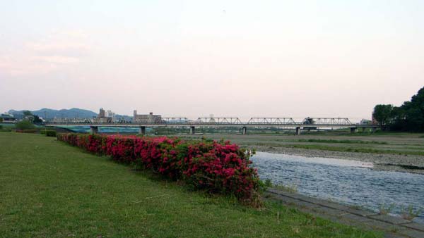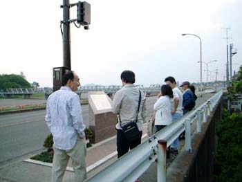 河川敷を歩いて渡良瀬橋が少しずつ近づいてきました。この写真の右手、渡良瀬川上流にはチョコの撮影現場となった緑橋があります。あいにく、雲が出てきてしまい夕日はまたしても拝めず。参加者全員、渡良瀬橋に落ちる夕日を見れたことがないのです。冬場の天気が安定している日の方が夕日を見やすいらしいです。今年の冬に再チャレンジかな。