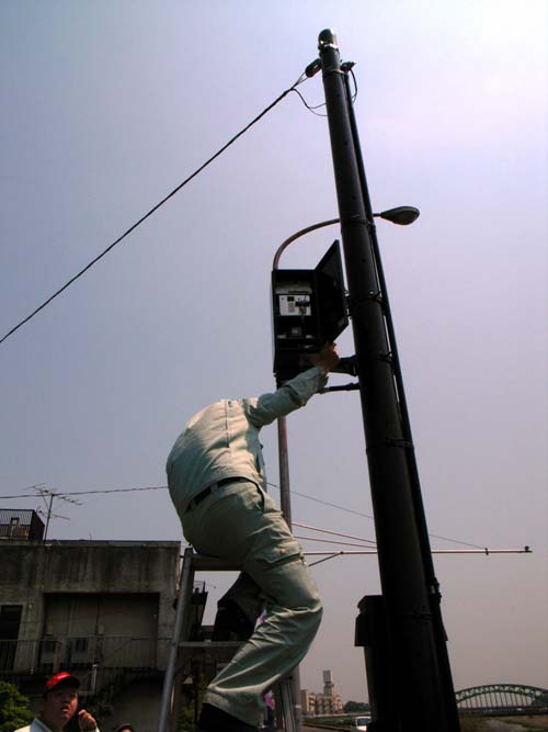 人もいなくなってきた頃、業者の方が脚立を持って登場。何をするのかと思ったら音量調整でした。式典用に通常より大きな音を出していたようで、調整後は若干小さくなりましたが、それでもかなりの音量です。