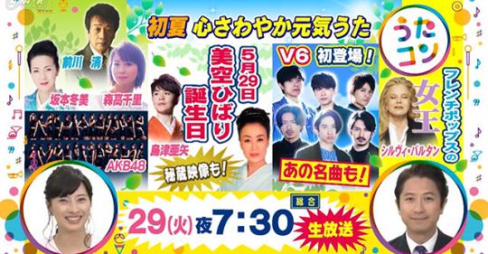 ★ NHK総合「うたコン」に出演決定!同番組ではすでにお馴染みの顔ですね。