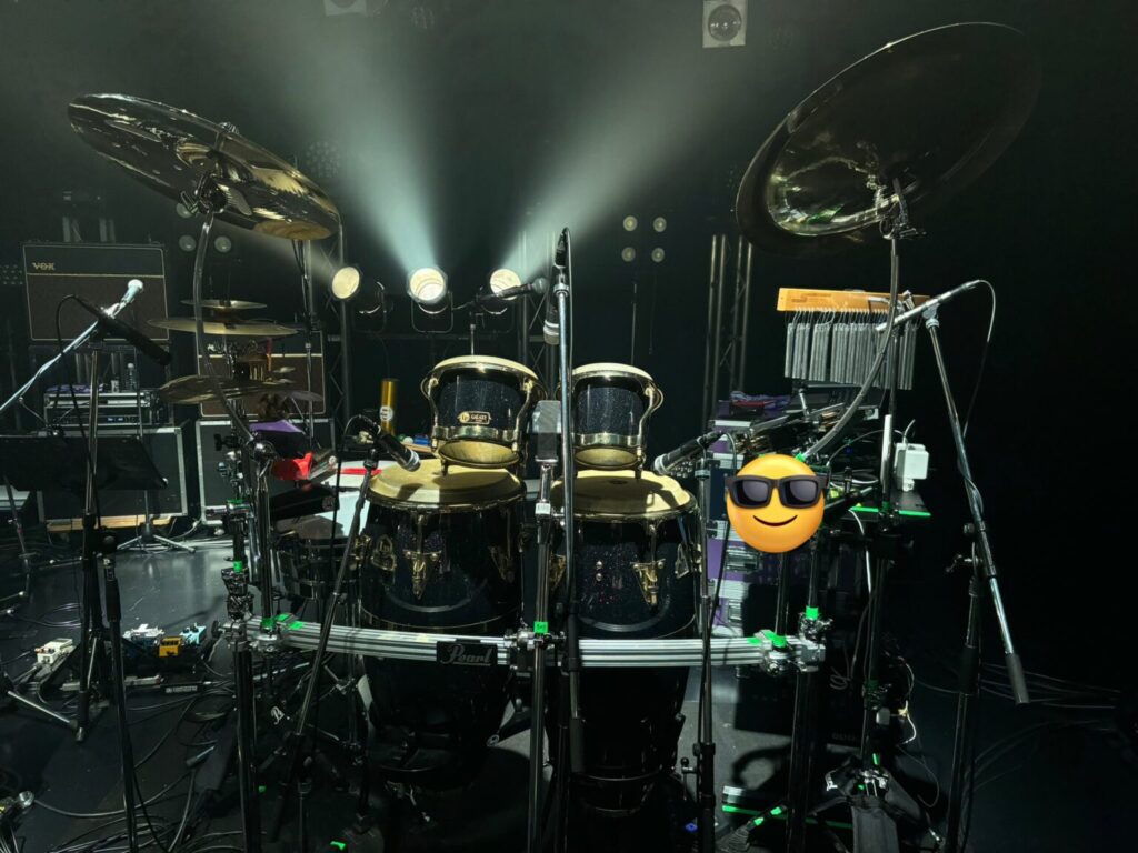 これはホーリーのパーカッションのセット。Xのポストからお借りしました。堀 守人@Hooley0522 アカウントもホーリーなんですね。5月22日生まれだそうです。今回の席からはなかなか見え方が厳しくて、バンドメンバーは唯一ホーリーがよく見えていました。なのでホーリーの演奏を結構見ていました。