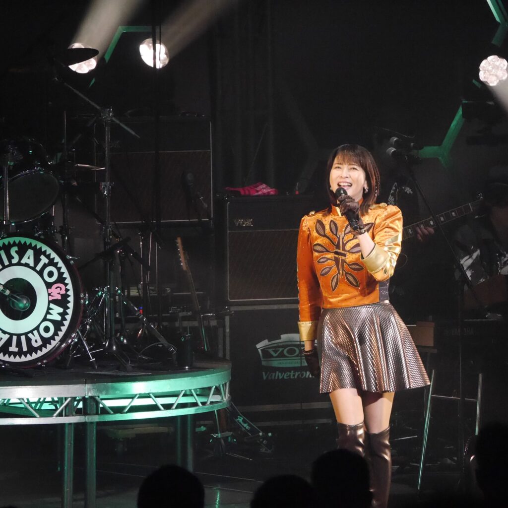 「ラバーバンド!」イェーイ!!と両腕を突き上げる前方ブロック。後方ブロックから笑い声。森高さん何やら口にして、またイェーイ!!「面白いリアクアションですね。ラバーバンド。」イェーイ!! といちいち反応する前方ブロック。「色々なアーティストさんがラバーバンド出してて、着けてる若い人が多いですよね。」と言ったものだから、すぐさま反応。若い人!? 「…。若い人たちがね。」年齢高めな森高ファンにはフォローになってなかったですね。でも、特に客席からのツッコミはありませんでした。