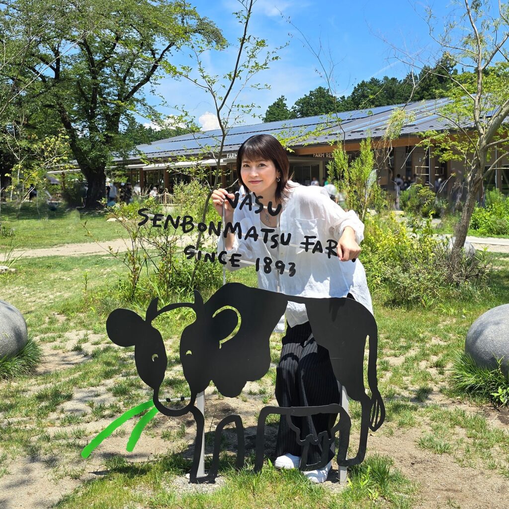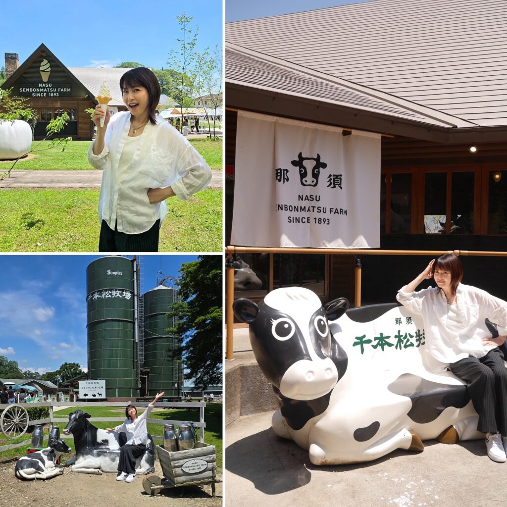 「初めてなのでベタな所に行って来ました。千本松牧場に行って来ました。行った人いるでしょ?連休中なので、失敗したかなというほど人が多かったです。家族連れとかワンちゃん連れてとか。牧場は子供が小さい時には行きましたけど、なかなかこういう機会がないと行かないので。昨日もソフトクリーム食べたけど、今日も食べました。買って写真を撮るまでにもうドロドロになって…。でもみんなで美味しく食べました。牛乳とかヨーグルトもありました。生クッキーとかもあって、千本松ホロット?ホロッコ?ホッホー?…ホロッホー?」客席からホロッホー!と叫んでたので、さながらハトポッポ大会の様相に。