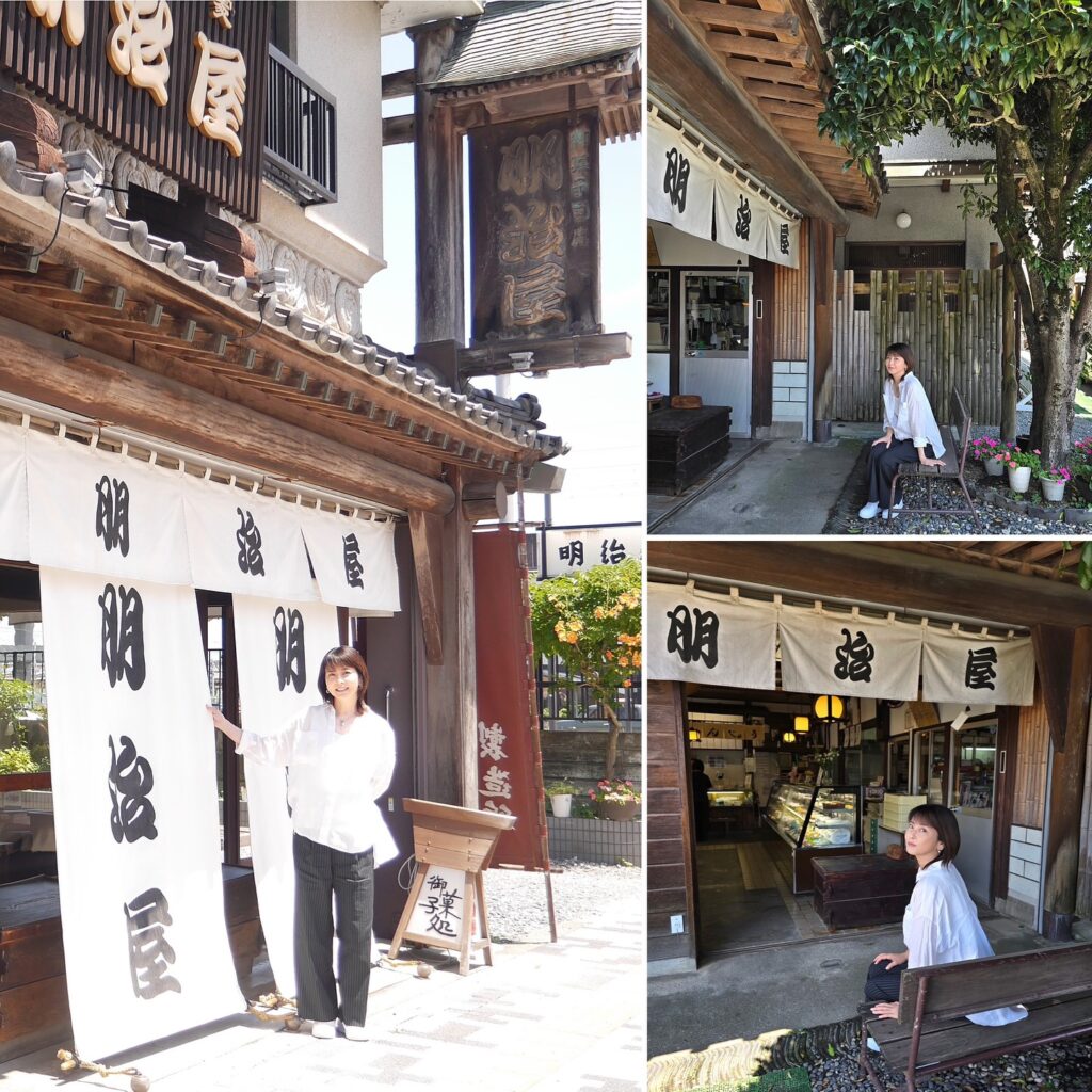 「温泉まんじゅう。明治屋さん知ってますか?明治屋さんは建物が古くて、趣があって、いい感じの佇まいでした。」