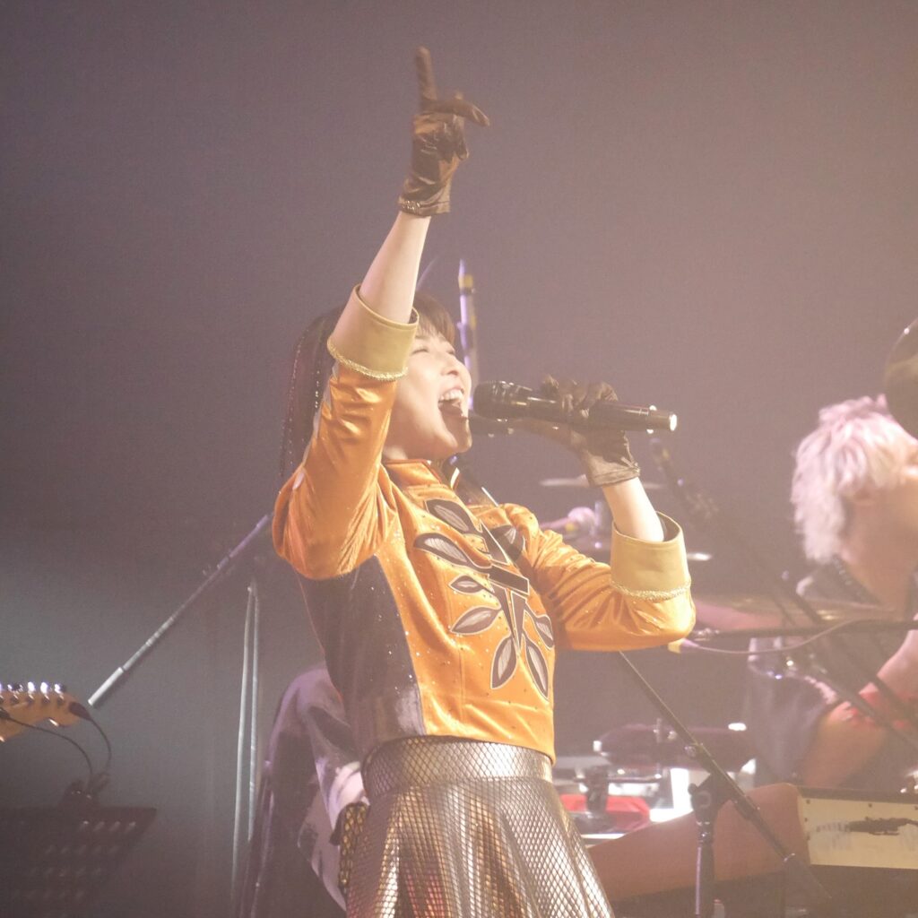 「こういう感じのライブだと暑いよね。私もいつまで体力が持つかなと。まだまだー!