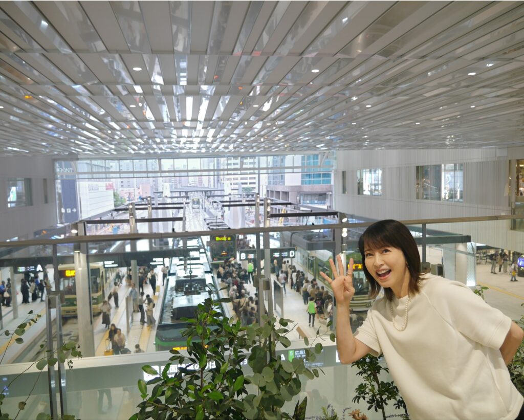 「続いて行って来たのは広島駅。大阪の『ララ サンシャインレディオ』でメールをいただきまして、今年路面電車が駅の2階に乗り入れるようになったというのが話題になったそうです。それを是非見たいなということで行って来ました。こっちに住んでいる人はよく知ってると思うんですけど、一体どういう風になっているのかなと。想像がつかなかったです。上の方から見れるようになっていて、そこから真正面に電車が入って来る所が見れるんです。思いの外、滅茶苦茶楽しくて、あっちかなこっちに入るのかなって。私、熊本出身なんですけど、熊本にも市電があるんですけど、それが広島駅の2階に登ってくるなんて想像がつかなくて。よく使ってるよっていう方いらっしゃいますか?(あまり手が挙がらずに)少ないですけど。広島以外から来た方は行った方がいいんじゃないかと思います。スタッフに『よかったね~!』って言って。写真はインスタに載せますので見てくださいね。」