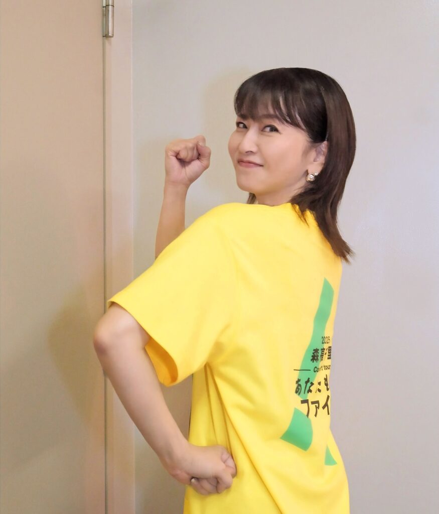 「この“あなたも私もファイト!!”ツアーは12月まで続きます。1年掛けて色々な所を回らせていただいて本当に楽しいんです。こんなに楽しくていいのかなって思うくらい楽しいです。会場ごとに皆さんノリも違いますし、笑顔の感じも違いますし、そして応援の仕方も違います。今日はどんな感じなのかなあって思いながら行って、あれっ?っていう時もあるんです。」笑 「今日は凄いなあ。私ももっともっと頑張んなきゃっていう時もあります。本当にそれぞれで、同じライブはないので、たぶんそういうライブが好きでやってるのかあと感じています。今ごじゅうウン歳になりましたけど…。あまりもう言いたくない。」笑 「だいたい皆さん同じくらいの年齢層でしょ?ね?」はーい!大きな拍手 「でも最近は若い子たちも来てくれてます。YouTubeとかで私を知る機会が増えたのかなと思います。わざわざ来てくれてうれしいです。10代の子はちょっと難しいかな。20代、30代が増えるといいなあって。」笑 「もちろん同世代の方ももっともっと元気になって、いつまでもいつまでも来ていただけるように、頑張って歌っていきたいと思います。」拍手