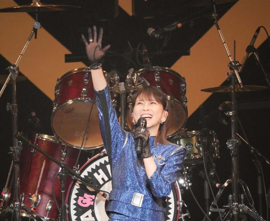 「夜の煙突」終わりでは弾けまくった森高さんが、頭上で大きなハート❤。森高さんは腕の関節が柔らかいのか、ちょっと崩れたようなふにゃっとしたハートに見えました。